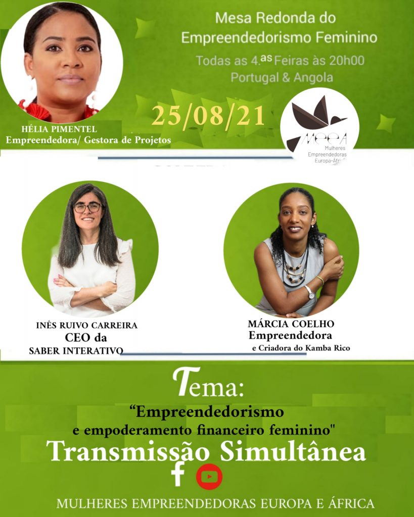A convite da Associação de Mulheres Empreendedoras Europa – África, tivemos um encontro marcado para hoje as com a Helia Pimentel e Inês Carreira para uma conversa sobre Empreendedorismo e Empoderamento Financeiro Feminino. Assistam na integra #empreendedorismo#empoderamentofeminino
