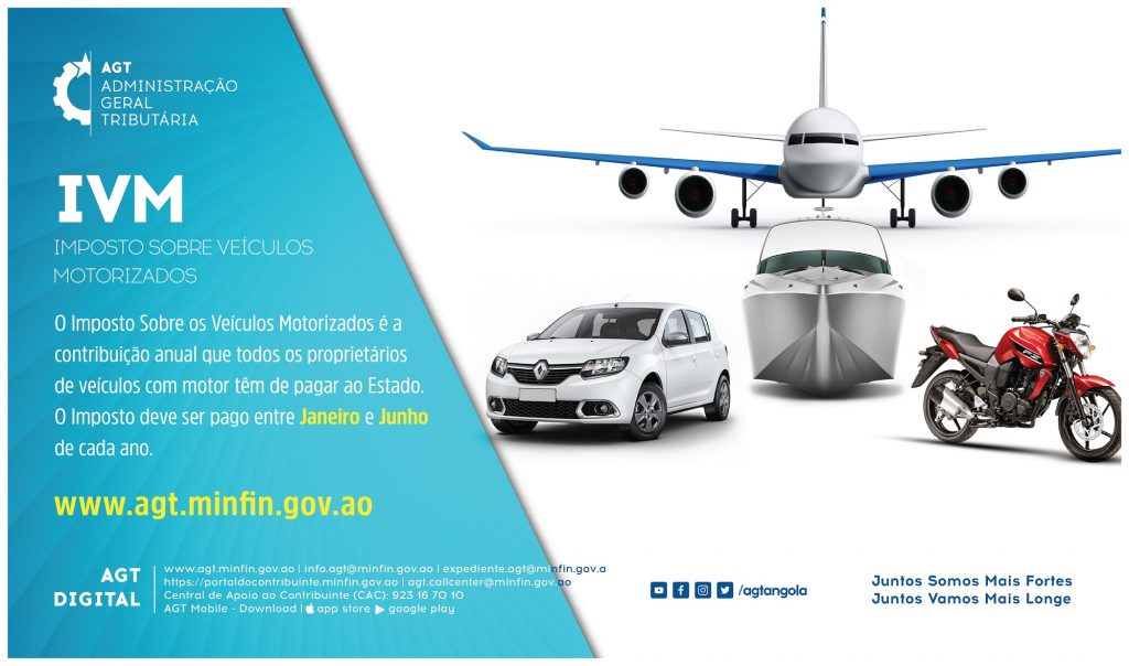 Os detentores de veículos motorizados devem cadastrar as suas viaturas, num processo rápido, simples e cómodo, sem sair de casa, através do website (www.agt.minfin.gov.ao); Portal do Contribuinte (www.portaldocontribuinte.minfin.gov.ao) e Central de Apoio ao Contribuinte (+244 923 16 70 10).