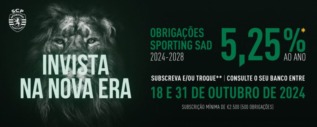 Além da subscrição, os investidores que possuem Obrigações Sporting SAD 2021-2024 poderão trocá-las por Obrigações Sporting SAD 2024-2028. A cada obrigação da emissão anterior (€5) corresponde uma nova obrigação com vencimento em 2028. O período de troca também vai até 31 de outubro de 2024.